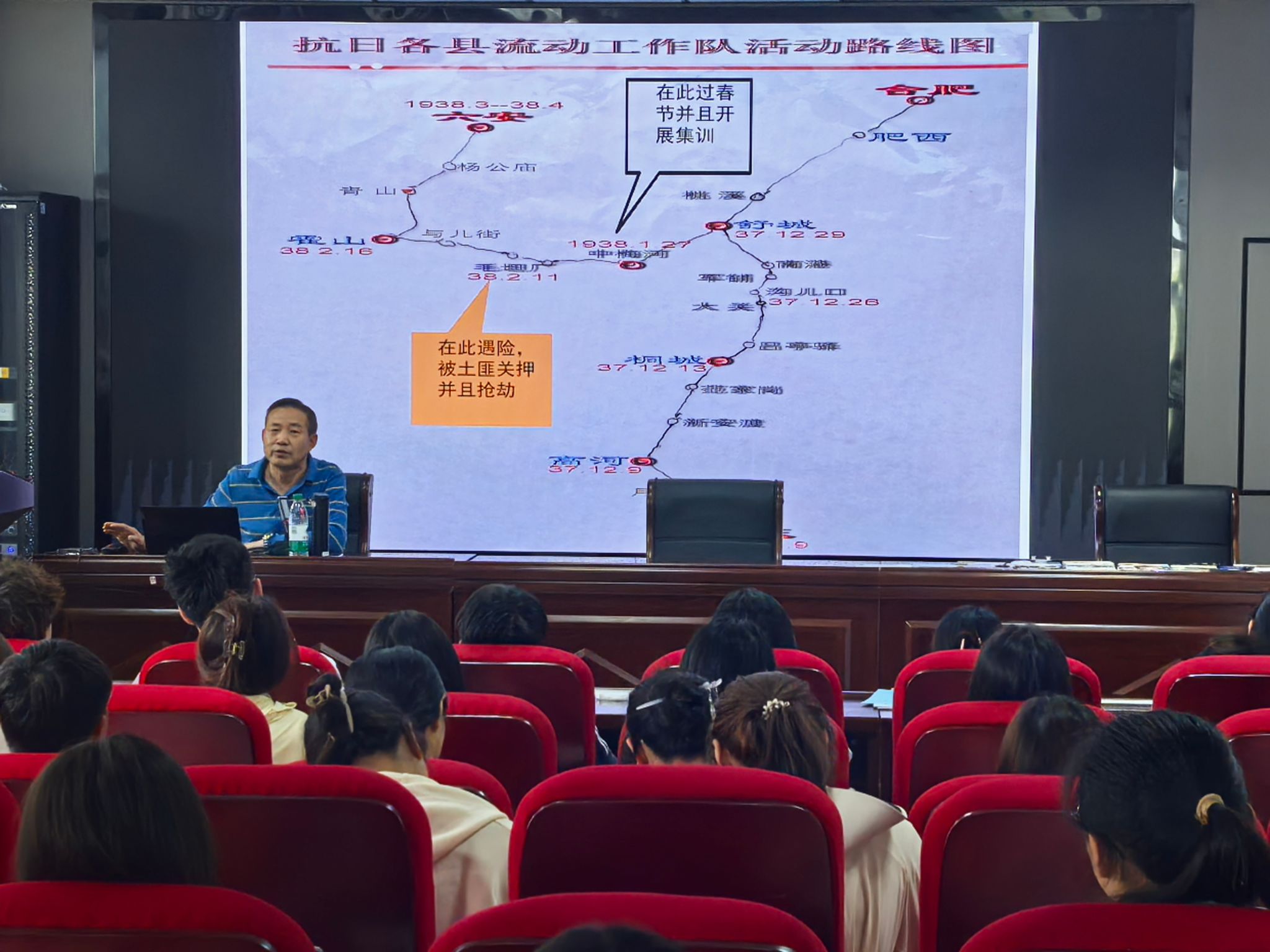 邀请吴毅安教授以《铭记抗战精神,传承爱国情怀——安徽青年学生抗日救亡工作团党史》为主题讲授专题党课,学生党员和第71期入党积极分子参加学习。