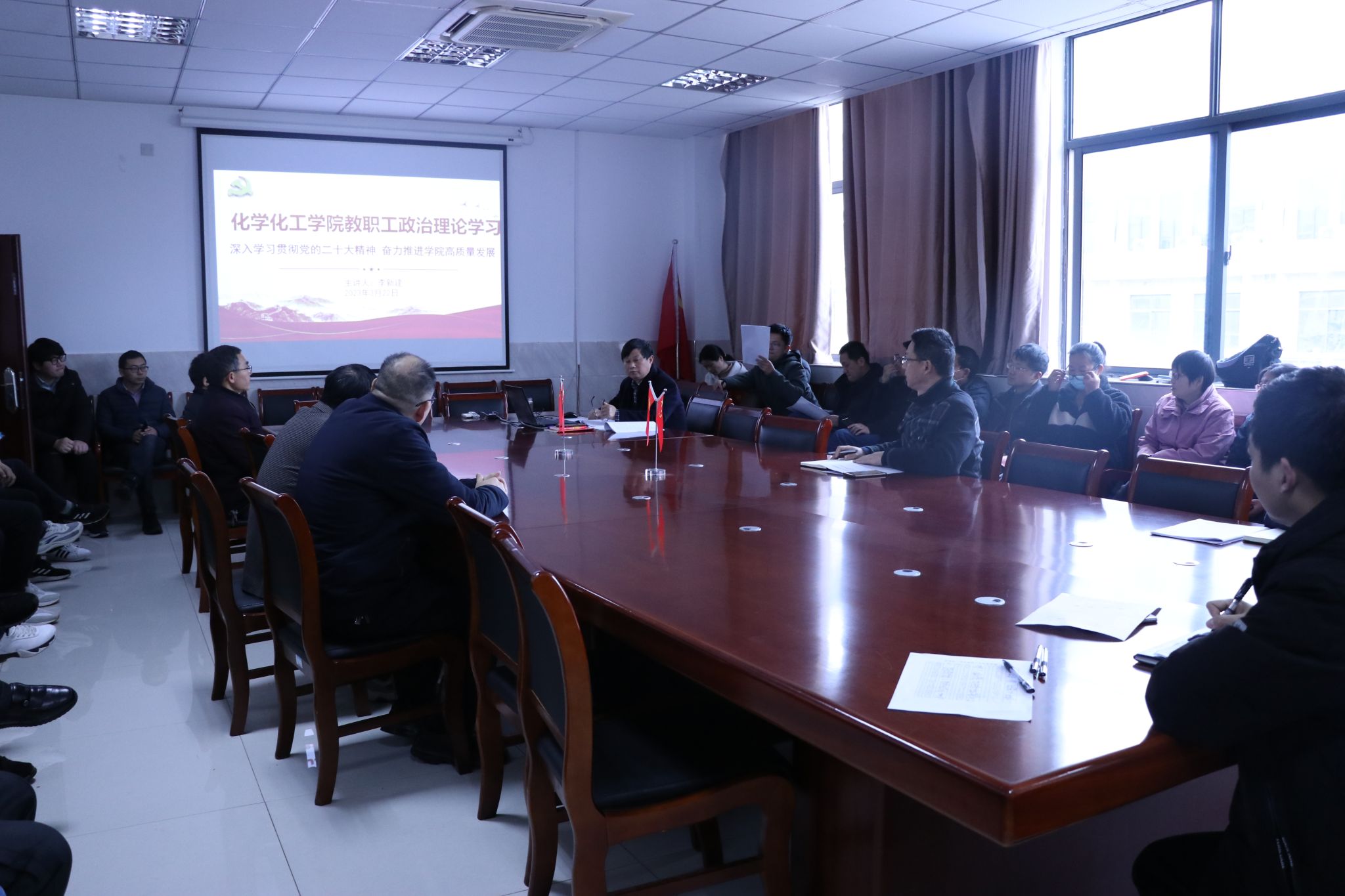 党委书记李新建以《深入学习贯彻党的二十大精神 奋力推进学院高质量发展》为题,向学院全体教职工作党的二十大精神宣讲报告。
