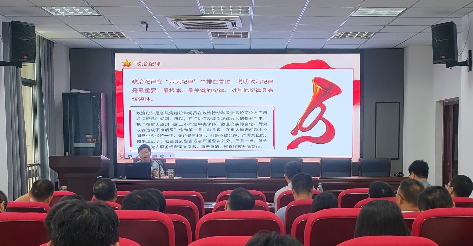 召开党纪学习教育专题党课,学院党委书记李新建以“党的六大纪律”为题讲授党课,学院党委领导班子成员和全体教师党员参加学习。