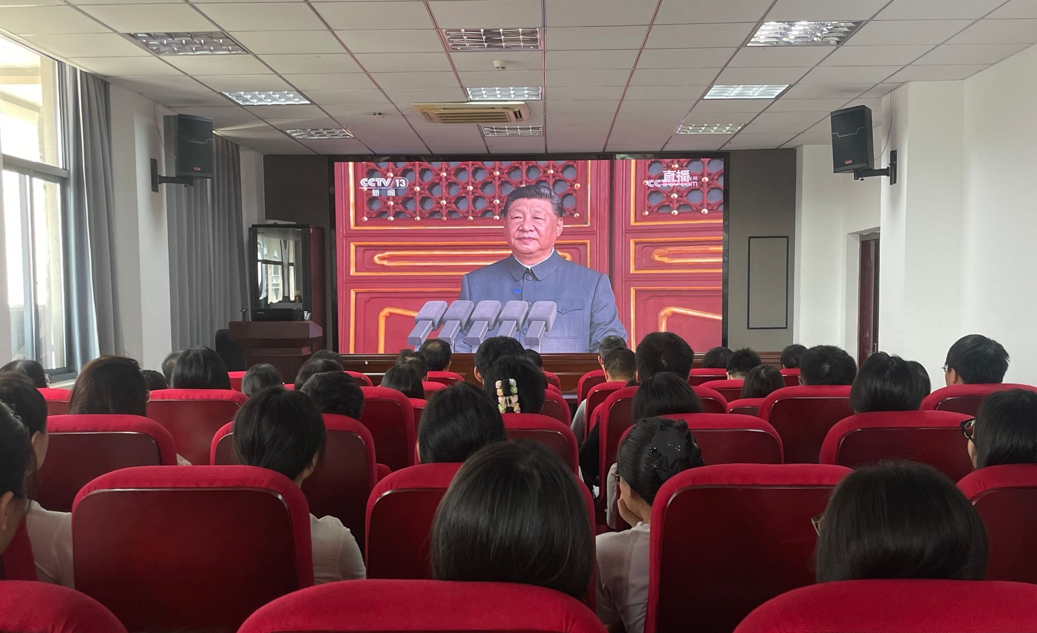 中共中央总书记、国家主席、中央军委主席习近平发表重要讲话并检阅部队。近70分钟的阅兵直播中,从气势如虹的空中护旗梯队飞过天安门,到列阵亮相的先进国防装备展现硬核实力,从浴血于抗日烽火中获得功勋荣誉的战旗方阵,到新时代军人的昂扬风貌诠释使命担当,每一个画面都深深触动着在场师生的心弦。与会同志既为“钢铁洪流”的力量所动容,也向在抗战中牺牲与奋斗的革命前辈致以崇高敬意。