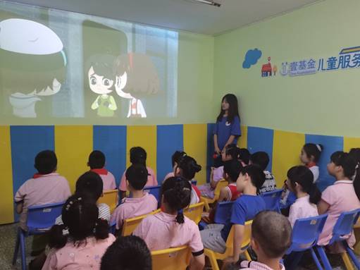 “敌人看见王二小在山坡上放牛,就叫他带路。王二小装着听话的样子走在前面,为了保护转移的乡亲,把敌人带进了八路军的埋伏圈……”考虑到孩子们年纪尚小,直接宣讲难以激发他们的兴趣,实践团一致决定将朗读红色故事和播放动画短片的形式相结合,通过讲述典型榜样的动人事迹帮助小朋友们深入学习百年党史,感悟革命力量。