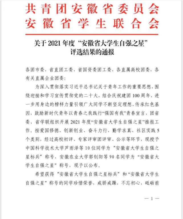 近日由安徽团省委、省学联组织开展的2021年度安徽省大学生自强之星评选活动落下帷幕,潮人论坛