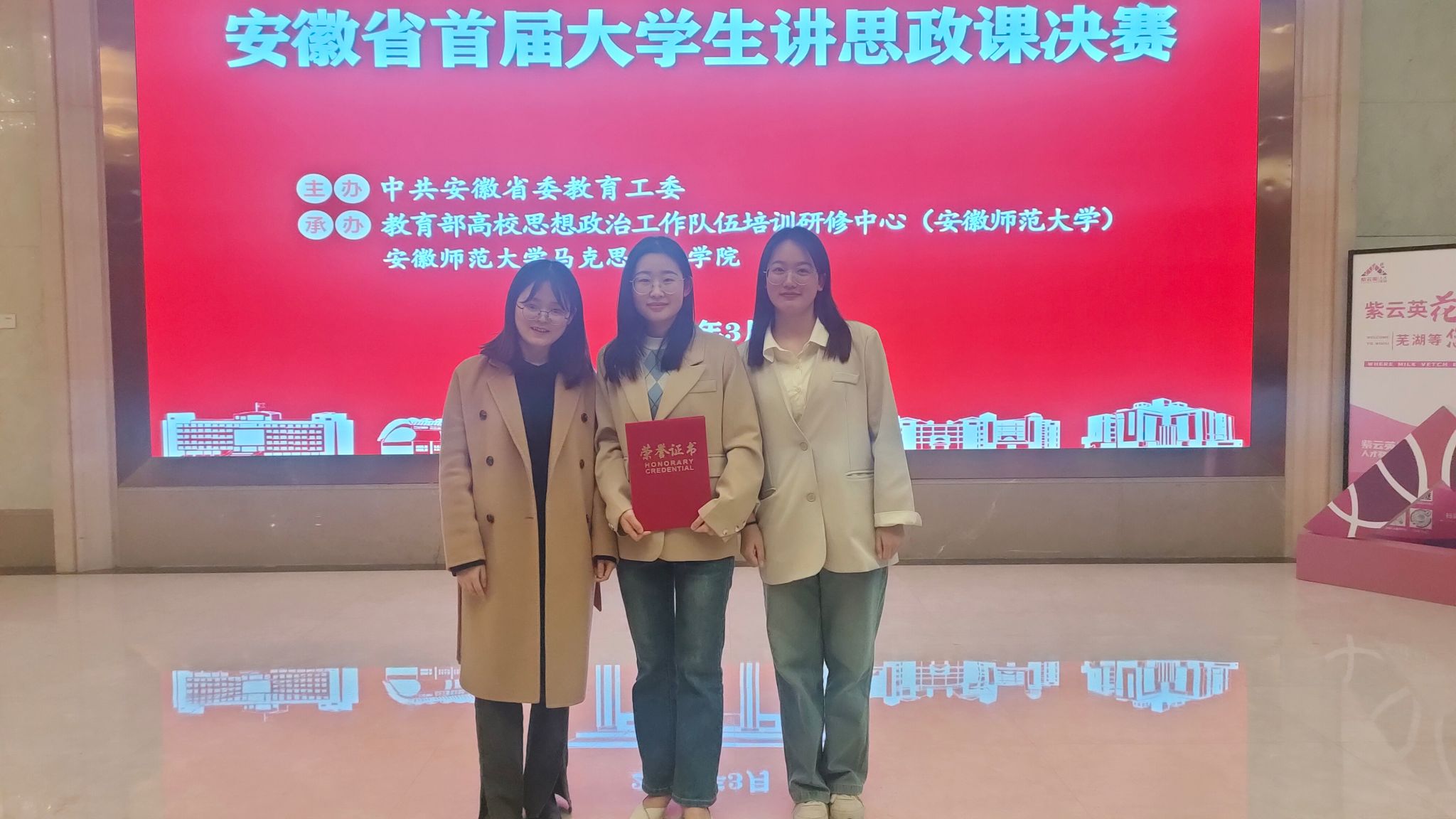 本次大赛由中共安徽省教育工委主办,教育部高校思想政治工作队伍培训研修中心、安徽师范大学马克思主义学院承办,全省共73组团队参赛。学院对本次比赛高度重视、精心组织,积极为学生比赛提供竞赛指导、技能培训,坚持将思政课内容与专业知识相结合,与实际生活相结合,最终李林团队以《共“碳”强国之路 共享绿色未来》为题,荣获二等奖。