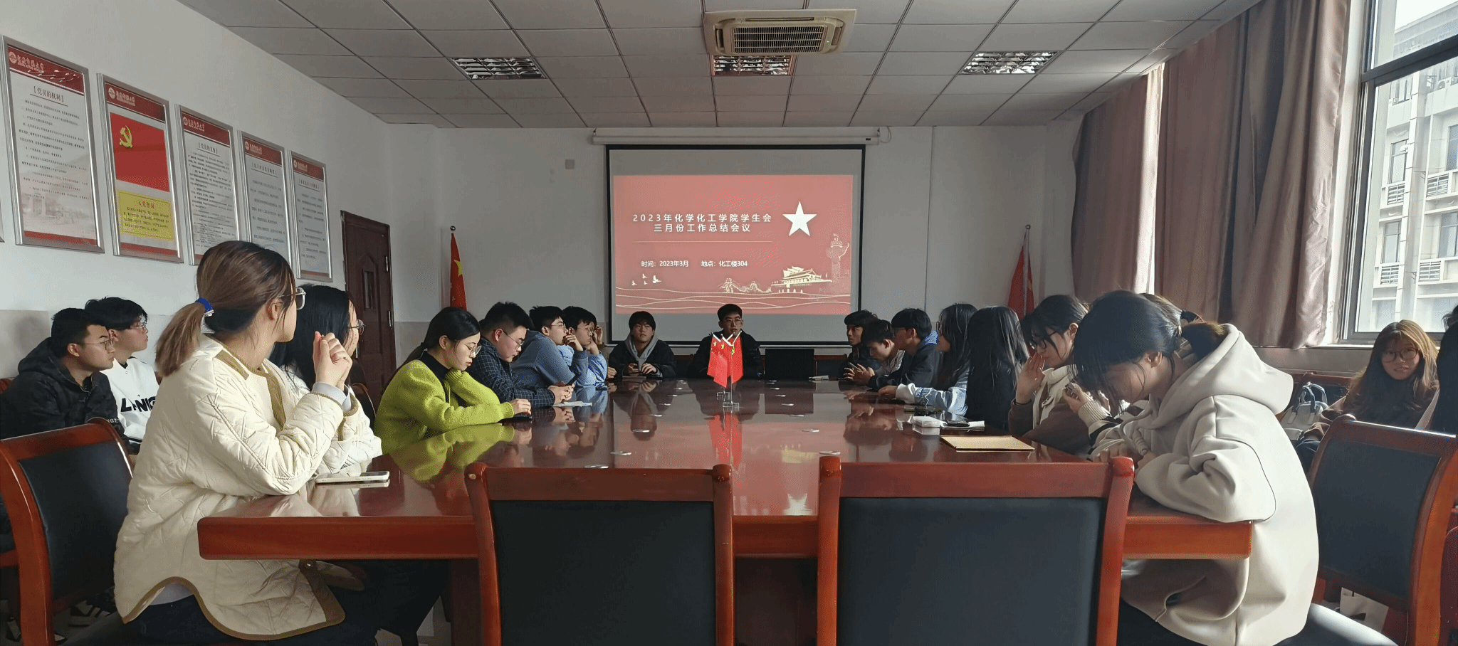 学生会召开三月份工作总结会议,学生会各部门负责人参会,会议由执行主席周琛琛主持。