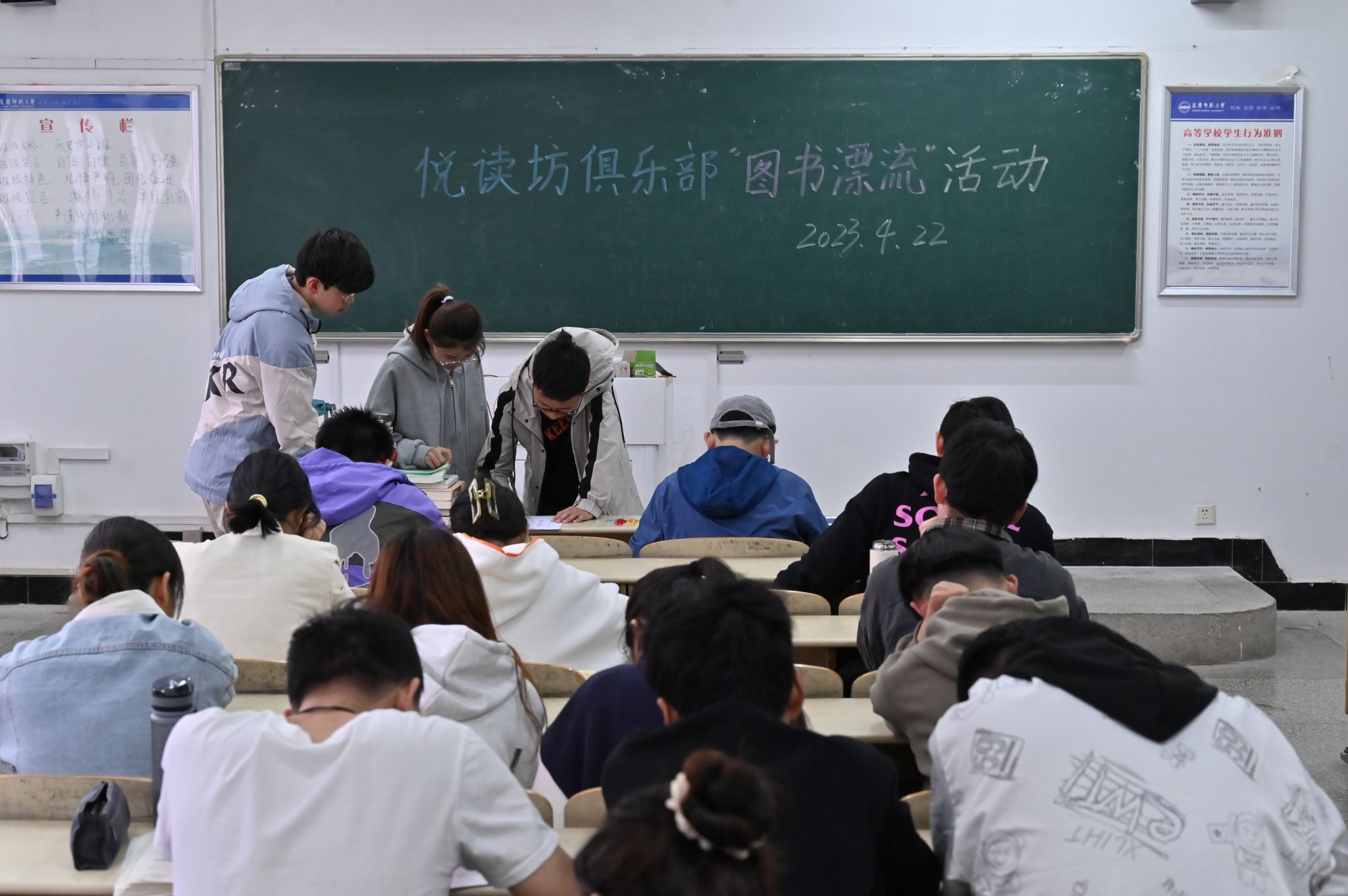悦读坊俱乐部在文渊楼204教室开展世界读书日——图书“漂流”活动。30余名成员参与活动,共同开启一起“悦”读的美好时光。