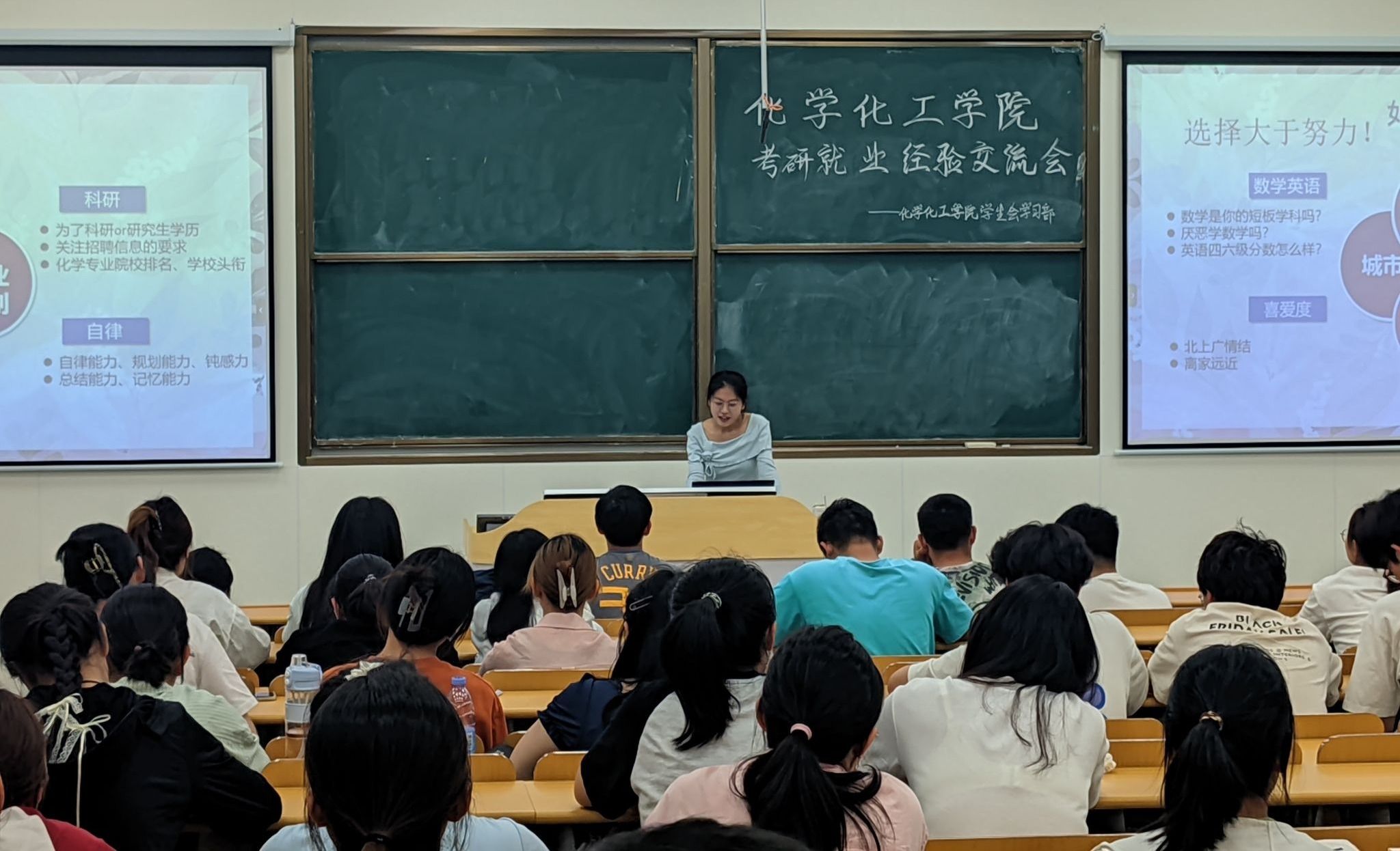 于C108教室举办以“‘研’途漫漫,勇往‘职’前”为主题的考研就业经验交流会。邀请了8位2020级考研成功上岸及基层就业的学生代表做交流,从方向确立、备考心得、复习策略及应试技巧等方面给学弟学妹分享经验,帮助他们明确未来的发展方向。