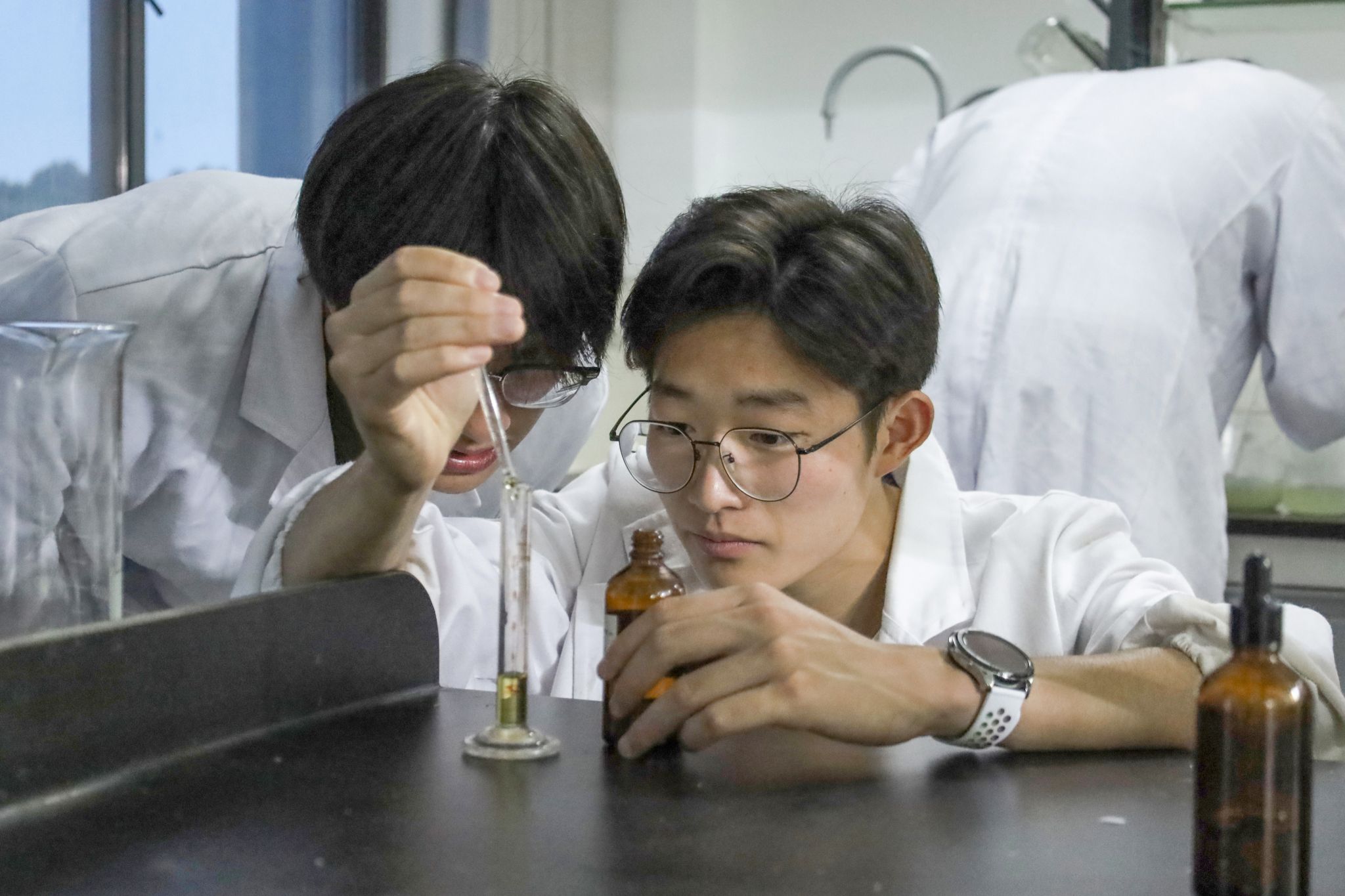 小老师们的耐心指导下,才逐渐掌握了实验技巧。