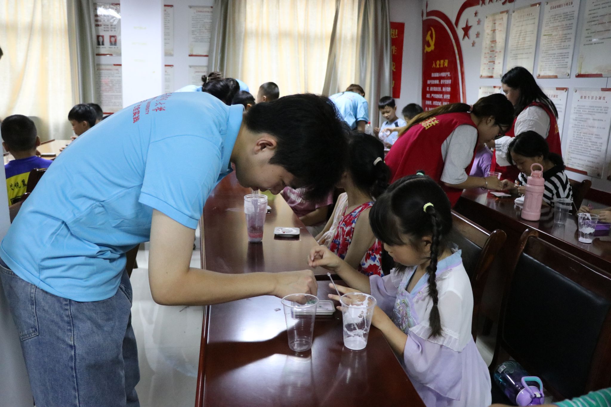 “学以致用——H₂O传习工艺坊”化学工艺品制作体验暑期社会实践团集思广益、大胆创新,开创“化学工艺品+”体验活动。7月16日,该团队前往宜秀区燎原社区,为社区的小朋友们举办了一场与书法课结合的化学工艺品DIY制作活动。