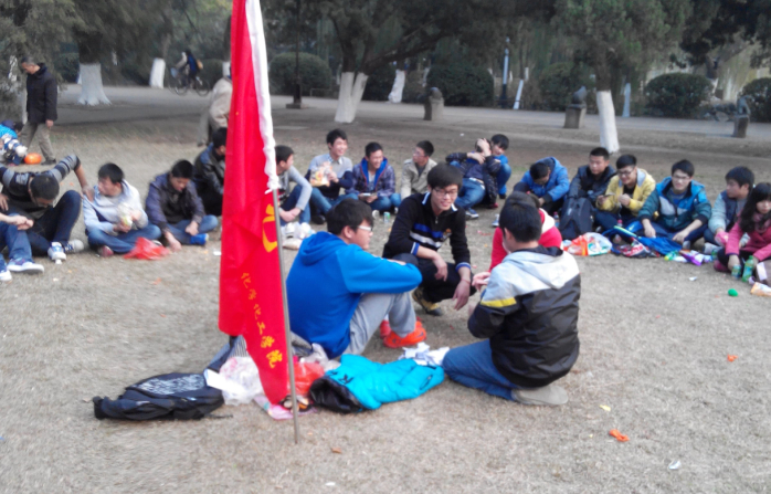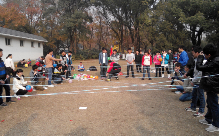 13级化学工程与工艺一班组织的主题为“团结一心,乐在交流”的团日活动在菱湖公园举行。此次活动共选择了四个游戏,游戏开始之前同学们围着班旗坐成一圈,每位同学先吹了几个气球备用。第一个游戏是大家随机分为两队,进行“接力运气球”,经过两队紧张的角逐,大家的热情被调动起来。随后输的队伍接受第二个惩罚游戏“偷天陷阱”,被惩罚的同学被蒙上眼睛在大家的“积极误导”下做出各种搞笑的行为,同学们都是欢声笑语。紧接着大家席地而坐进行第三个“定时炸弹”游戏,同学们轮流传一个“炸弹”,在主持人喊“停”时,“炸弹”传到谁,谁就要接受惩罚。游戏进行过程中还吸引了一些游客前来观看。第四个游戏萝卜蹲:同学们分成四队萝卜,相互间比力气。活动最后,整班合唱一首《朋友》。