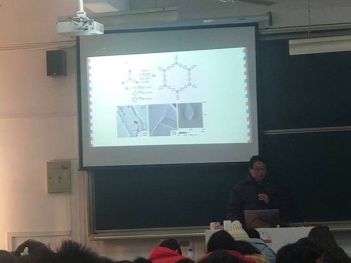 耿同谋教授在龙山校区教学楼C105室作题为“共轭微孔聚合物在荧光传感中的应用”学术报告, 2019级材料化学专业本科生参加了本次报告会。