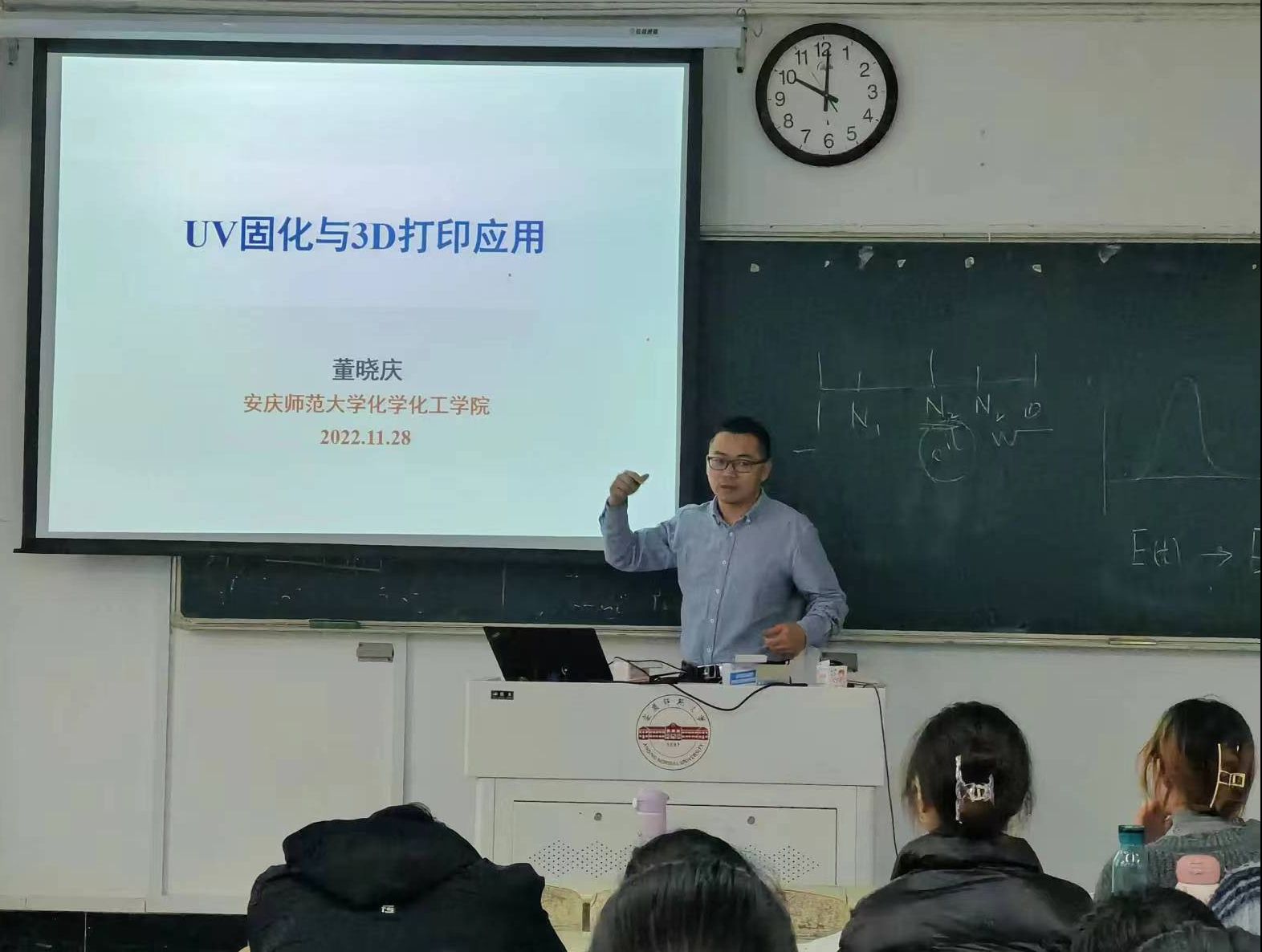 董晓庆副教授在龙山校区B406教室作了题为“UV固化与3D打印应用”的学术报告。学院化学工程与工艺专业50多位同学参加了此次报告会。