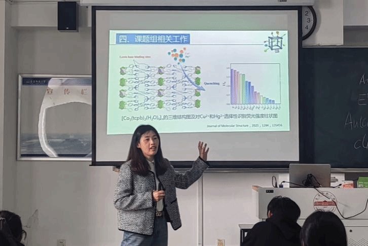 副教授孙佳音在龙山校区教学楼A401教室作了题为“金属-有机骨架荧光探针的构建及其在化学传感中的应用”的学术报告,学院化学、材料化学专业部分学生聆听了此次报告会。