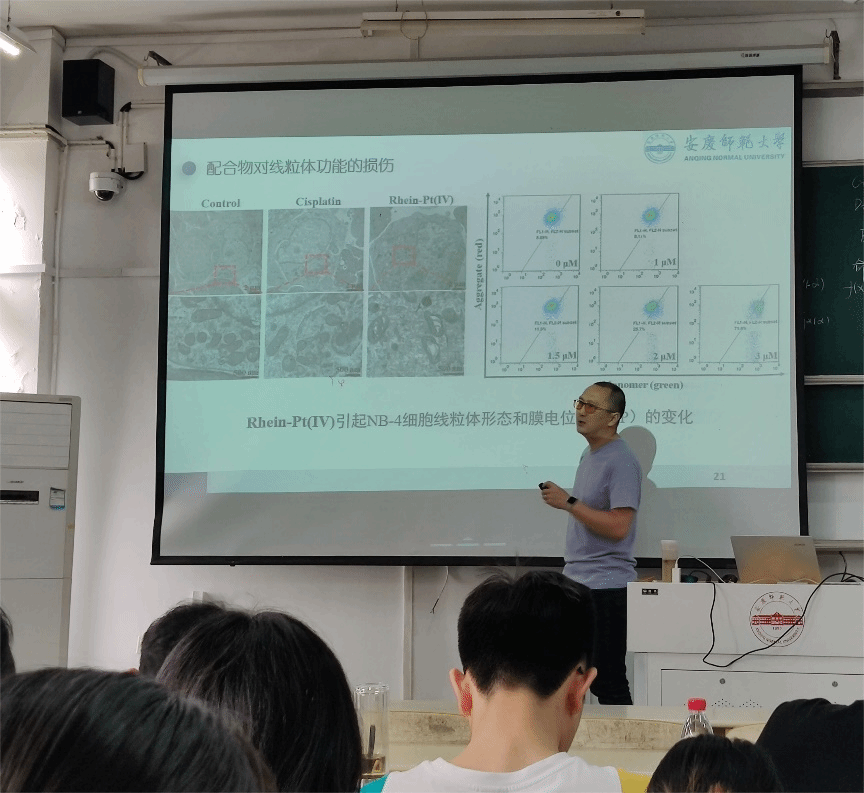 4月28日,潮人论坛 王彦教授在教学楼A205教室作“天然产物大黄酸修饰的金属抗癌药物的抗肿瘤活性研究”学术报告,化学专业部分学生参加了报告会。