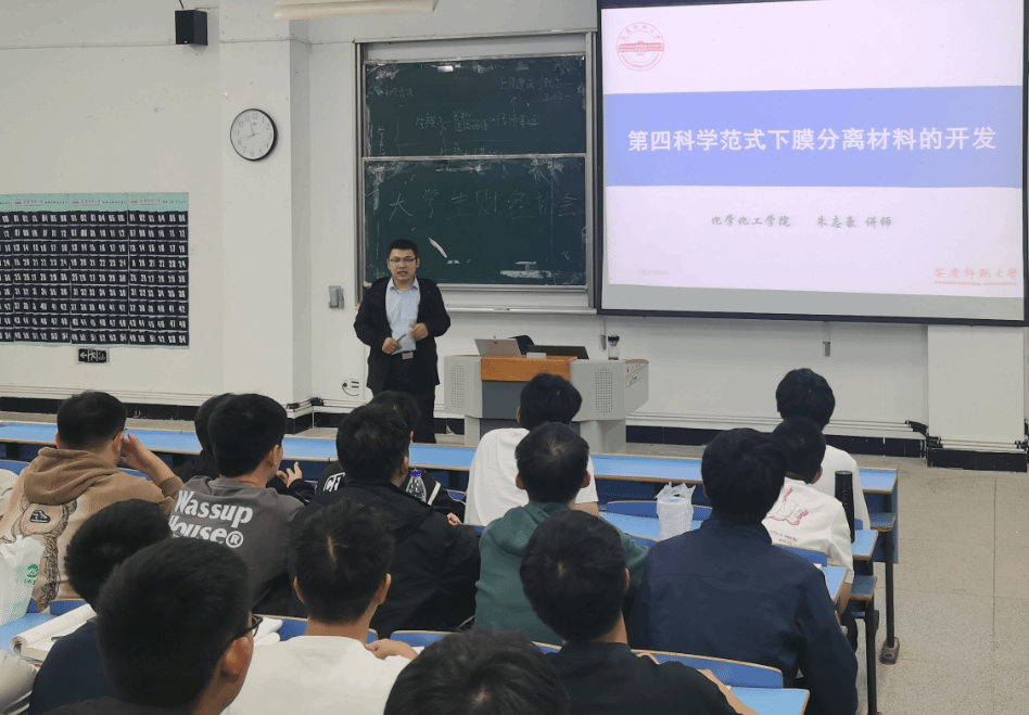 朱志豪博士在龙山校区C108教室作了题为“第四科学范式下膜分离材料的开发”的学术报告。学院化学工程与工艺专业100多位同学参加了此次报告会。
