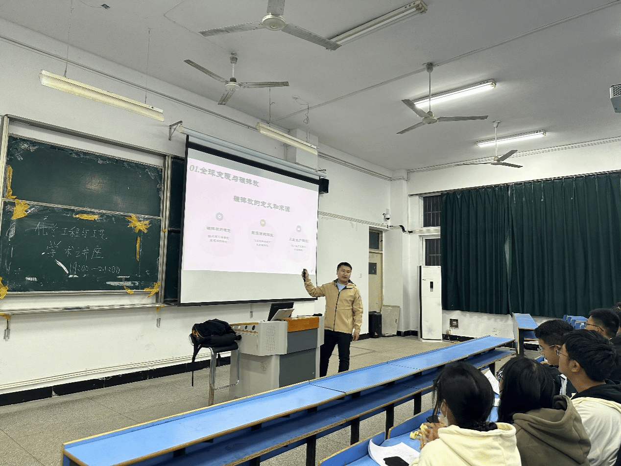 近日,潮人论坛 蔡振宇博士在龙山校区C108教室作了题为“碳中和理念普及——减缓全球变暖的有效手段”的学术报告。学院化学工程与工艺专业80多位同学参加了此次报告会。