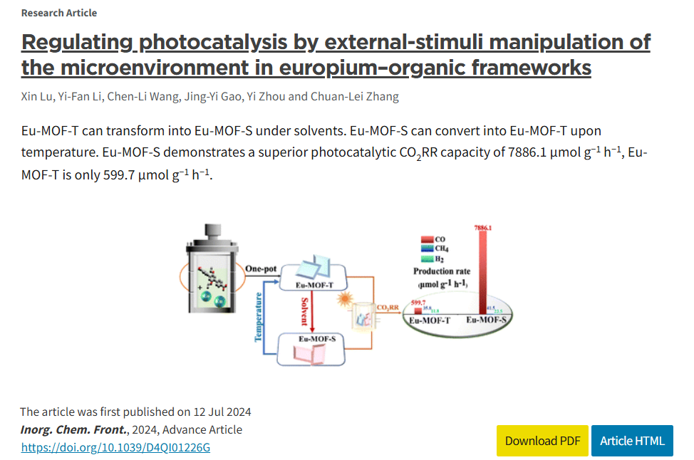 2021级化学专业研究生路新以第一作者在无机化学领域权威期刊《Inorganic Chemistry Frontiers》(化学大类一区,影响因子6.1)发表题为“Regulating Photocatalysis by External-Stimuli Manipulation of Microenvironment in Europium-Organic Frameworks”的论文,其指导教师张传磊为第一通讯作者,潮人论坛