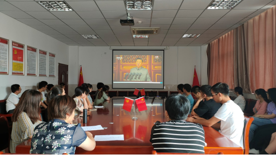 组织师生在学院会议室集中收看庆祝中国共产党成立100周年大会。学院党委委员、党支部书记、学生党员代表等参加了会议。