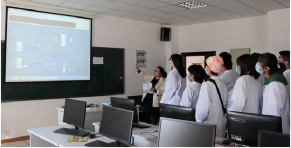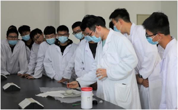 与前两期活动流程相同,在讲解员的带领下,同学们依次参观了化工专业实验室,物理化学实验室等七个基础实验室以及虚拟实验室、研究生实验室和趣味化学实验室。在参观化工专业实验室的过程中,陈静娟老师为同学们介绍了各种化工实验器材,带领同学们参观了控制化工生产的机房,为同学们介绍了工业产品生产的流程设计。