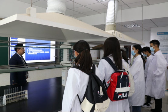 楼下集合,随后在讲解员的带领下依次参观了化工实验室、物理化学实验室等七个基础实验室以及虚拟实验室和研究生实验室。在参观化工实验室的过程中,孔学军老师为同学们讲解了化学实验的基本操作过滤、蒸发、干燥、萃取以及预热等,通过老师的讲解,同学认识到了如何将化工仪器运用在实际生产生活中的重要性。接着同学们来到物理化学实验室,方晖老师通过电渗、遮光率、蒸汽压等多个方面介绍了在今后同学们将要学习到的实验原理。紧接着在分析化学实验室中,冯依玲老师给大家讲述了分析化学实验的四大滴定反应,并要求同学们在今后的分析化学实验过程中一定要注重团队合作的精神的培养。