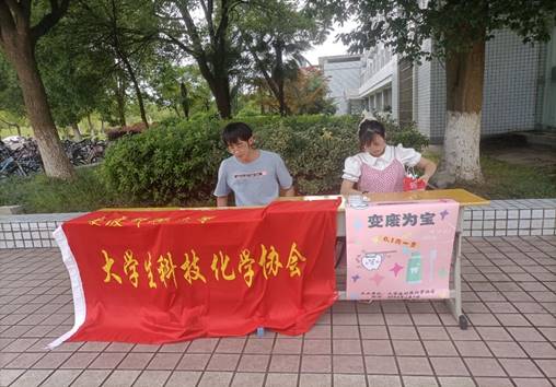 6月9日下午,由大学生科技化学协会骨干成员组建的“纤尘不染”低成本高效吸尘电动黑板擦项目团队在敬敷广场进行了“变废为宝--废旧牙刷有偿回收活动。