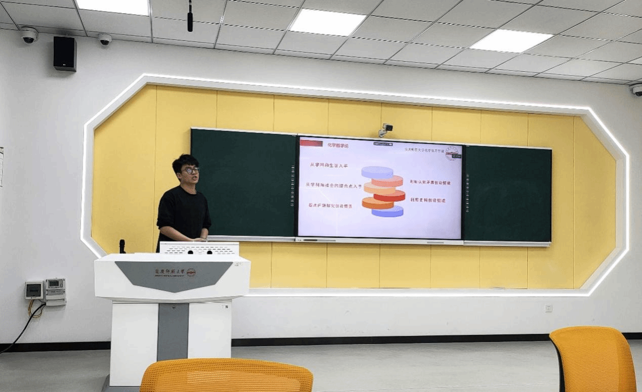 在D306举办第三届课程思政教学赛。化学、材料化学和化学工程与工艺专业共9名专任教师参赛。