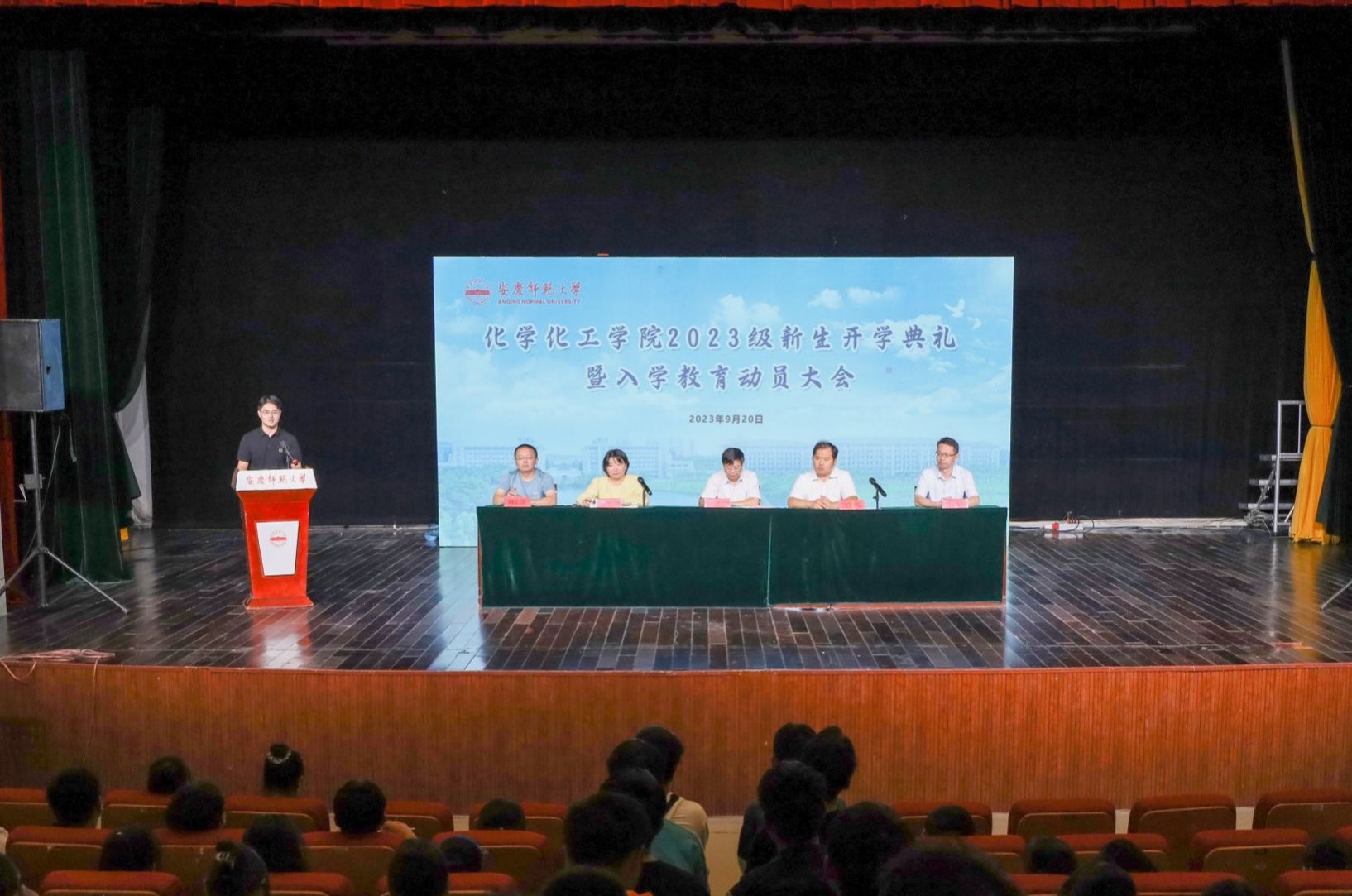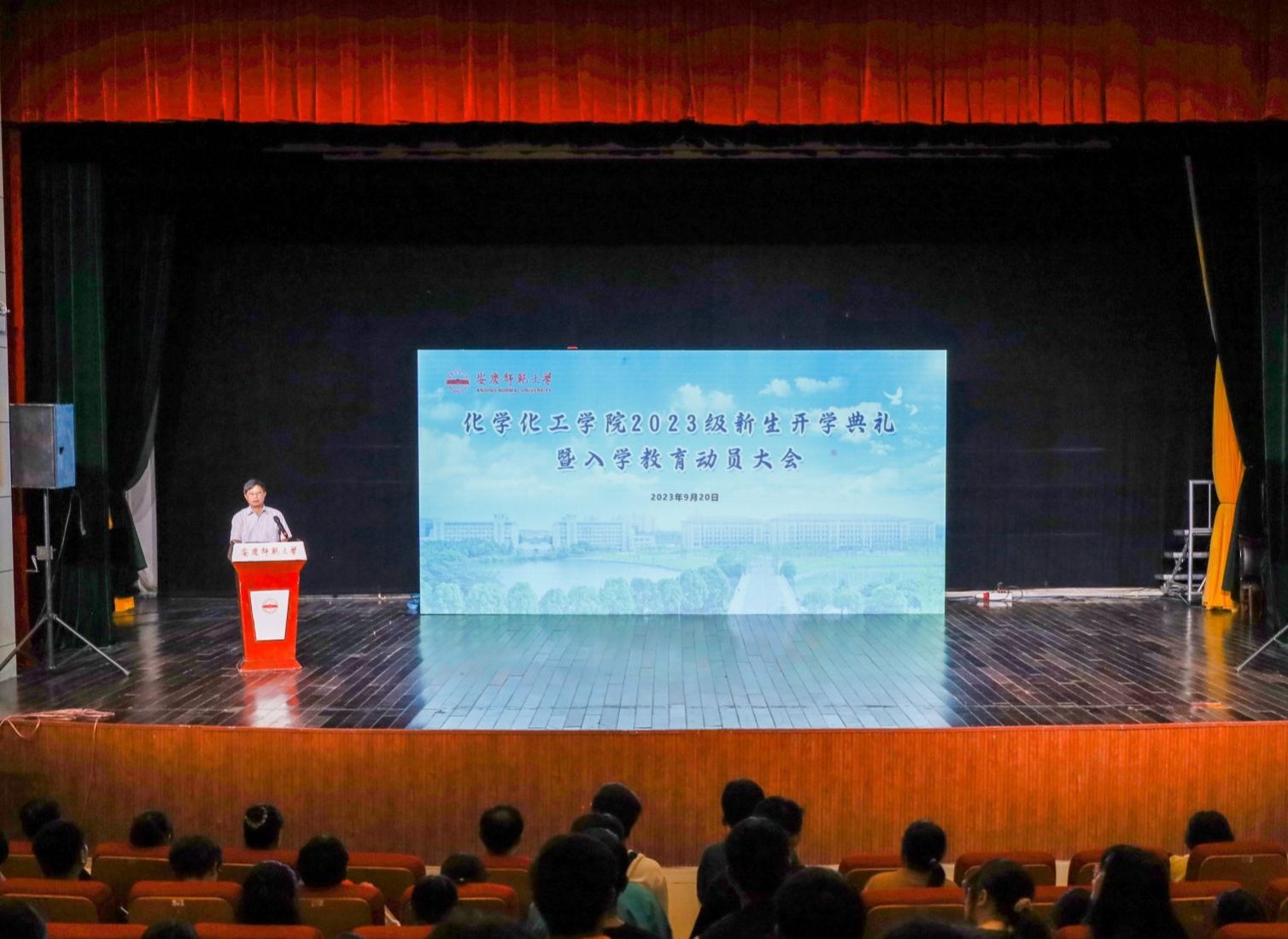 在龙山校区音乐厅举办2023级新生开学典礼暨入学教育动员大会。学院全体党政领导、专业负责人、团委负责人、教师代表、2023级新生辅导员及400余名新生共同参会。典礼由学院党委副书记鲍青燕主持。