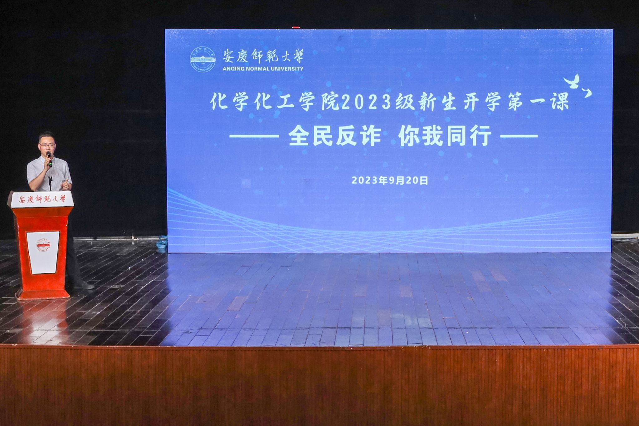典礼结束后,学院团委副书记石磊对新生开展以“全民反诈,你我同行”为主题的反诈教育宣讲。他结合身边真实案例,依次为新生们介绍了虚假购物、网络刷单、冒充熟人、网络交友等电信诈骗手段及相应的防范措施,提高了学生的防骗意识。
