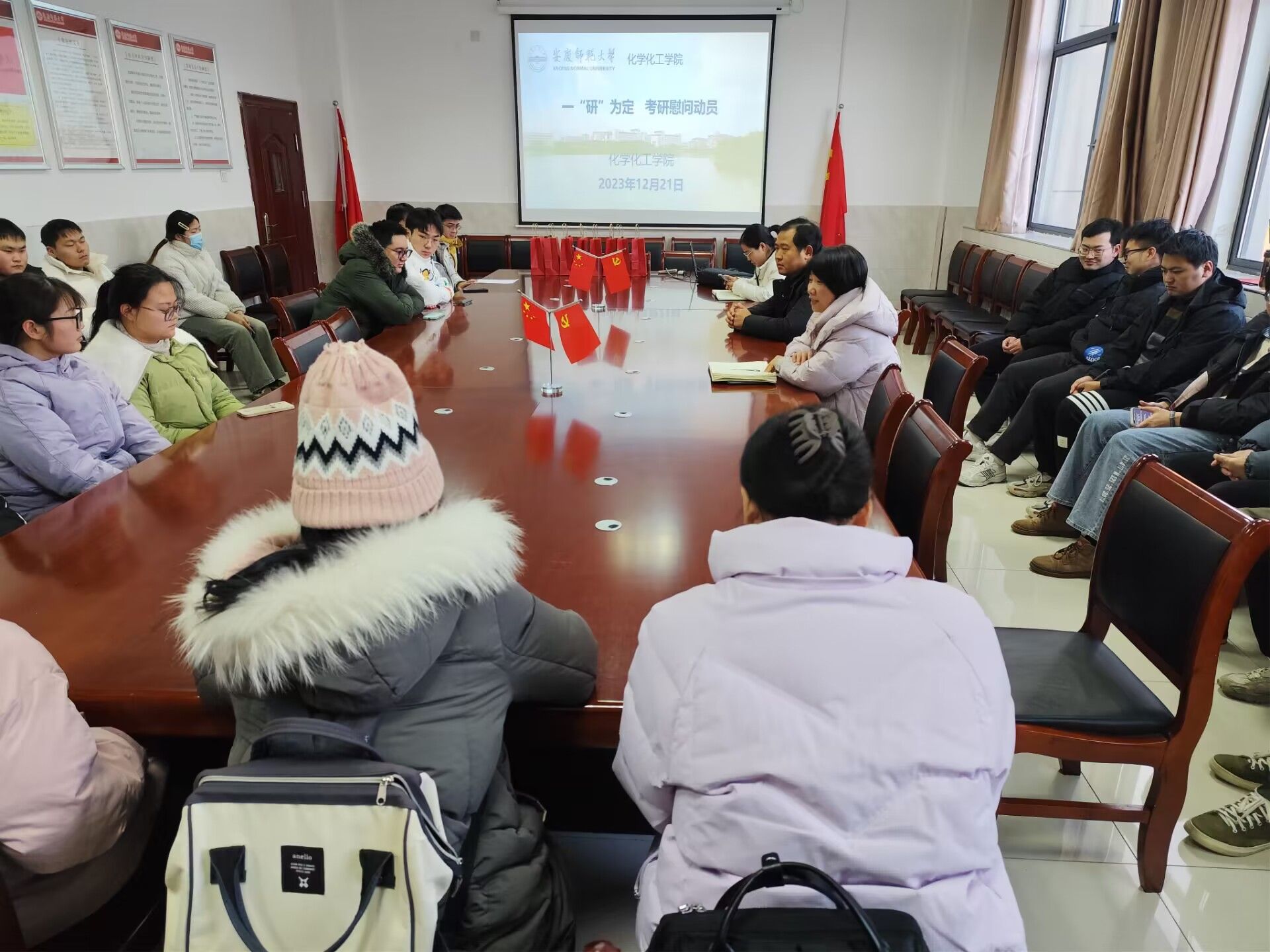 开展考研慰问活动,学院副院长王钧伟、毕业班辅导员及考研学生代表参加本次活动,活动由学院党委副书记鲍青燕主持。