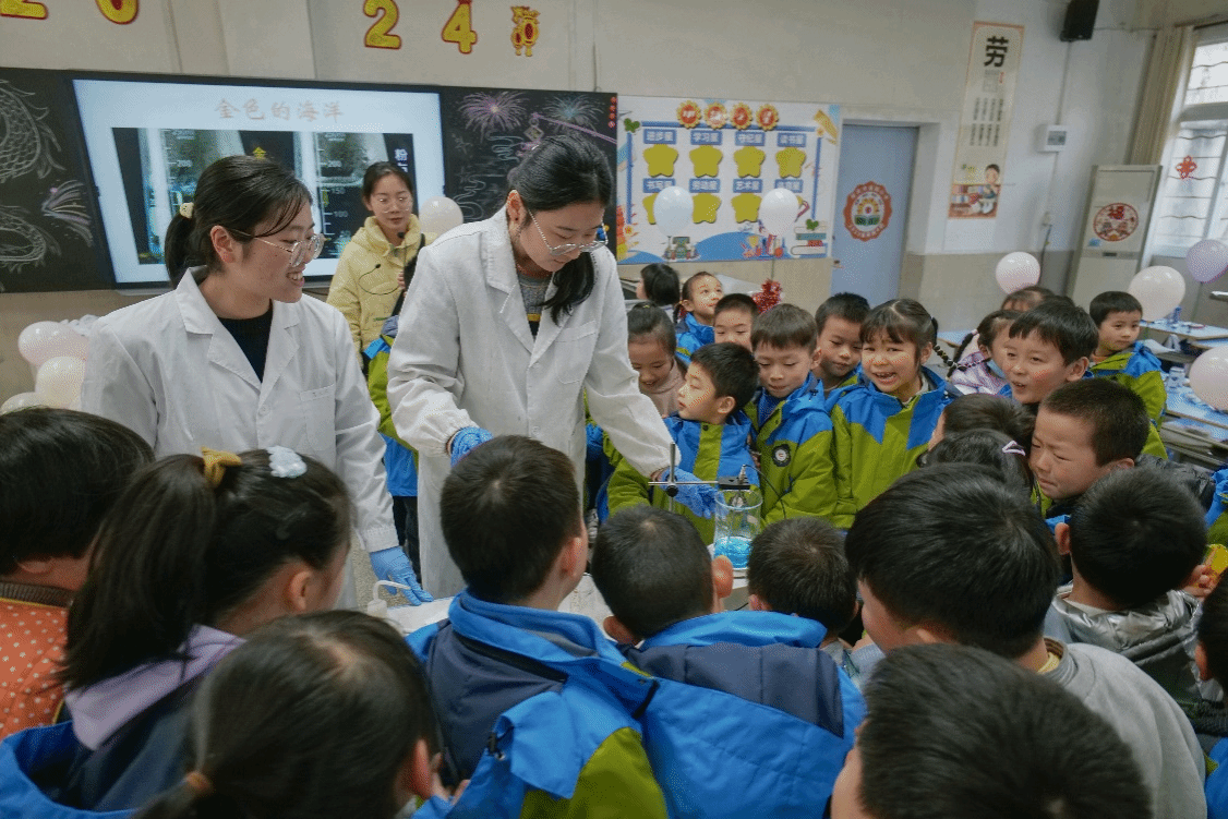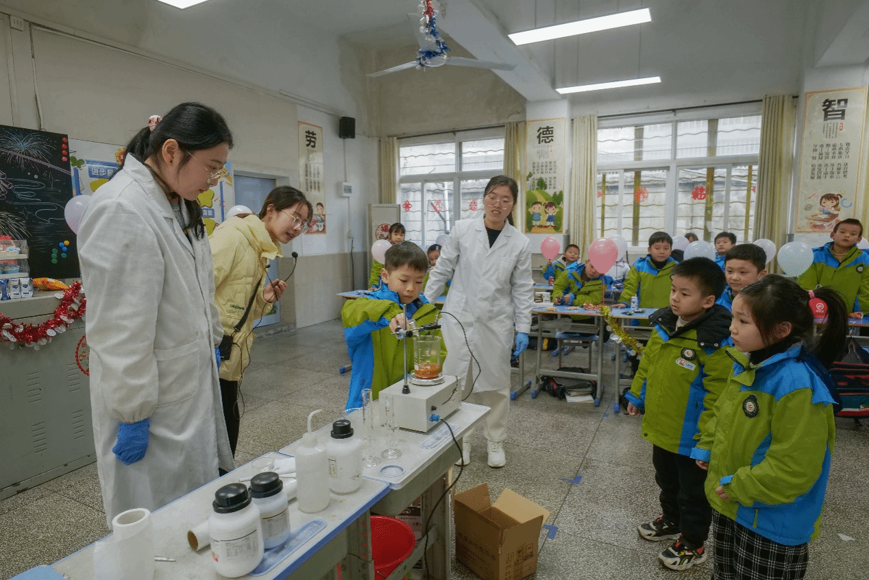 近日,大学生科技化学协会前往安庆市高琦小学开展趣味化学实验,为小学生带去一堂生动的科普互动体验课。