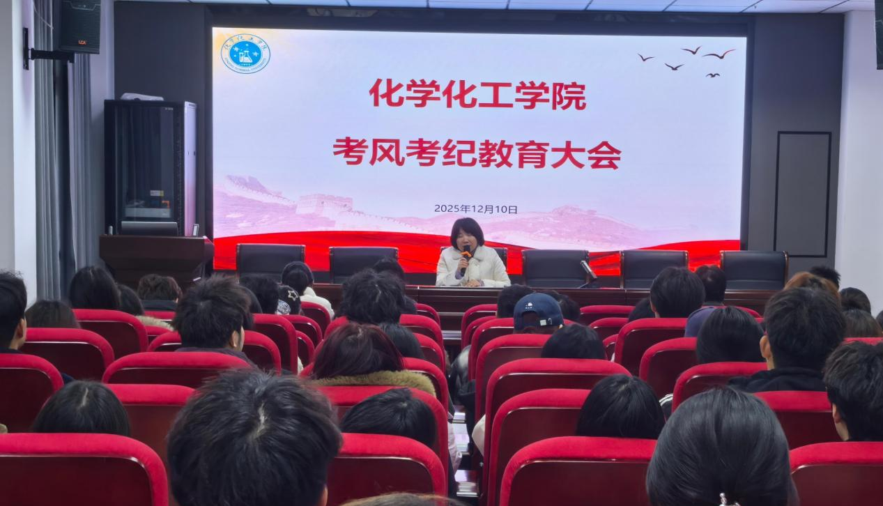 在化学楼401召开考风考纪教育大会。会议由学院党委负责人主持,全体辅导员及各年级百余名学生代表参会。